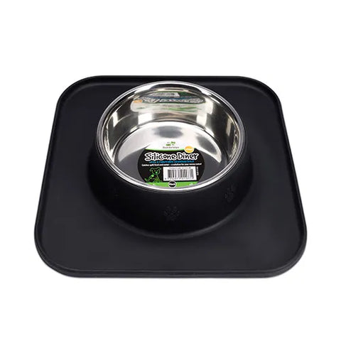 Perfect for catching spilt food and water - a solution for your messy eater! The stainless steel bowl is removable for easy cleaning