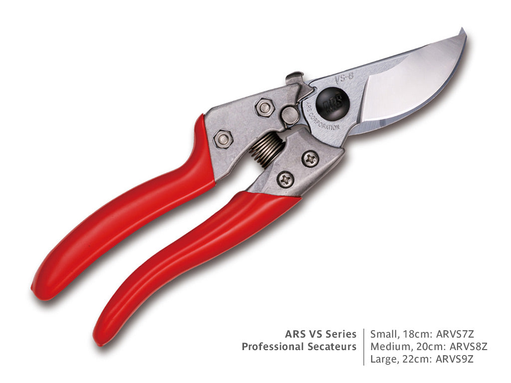 The ARS VSX Series are top of the range professional secateurs with PVC grips over an alloy body. Replaceable hard chromed blades with sap-groove on counter blade.
