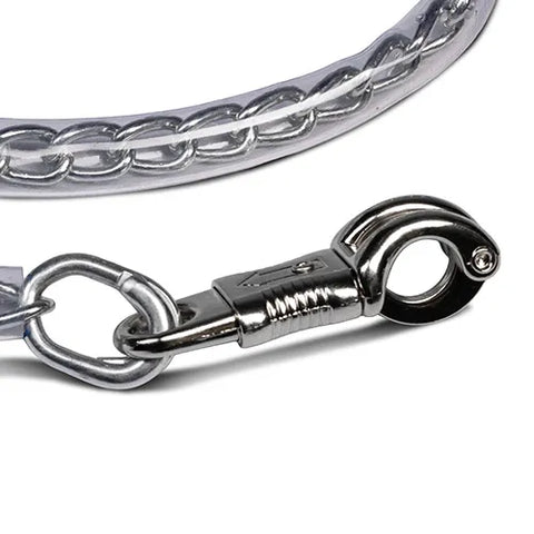- Features a safety plastic cover over the chain and includes a quick release panic snap at one end and a winch snap on the other.